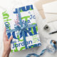 This modern repeating name blue and green font pattern personalised wrapping paper features their name or family name in a repeating word pattern with different trendy fonts on a white background. Your recipient will love to see their name gracing the front of their gifts! Order a roll for each family member's special birthday!