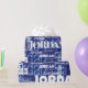 This modern repeating name blue and white font pattern personalised wrapping paper features their name or family name in a repeating word pattern with different trendy fonts on a dark blue background. Your recipient will love to see their name gracing the front of their gifts! Order a roll for each family member's special birthday!