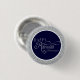 Silver and navy modern Retirement Party, Custom buttons. Modern navy design with white, silver and silver glitter polka dots.