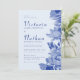 Modern Retro Blue Chinoiserie Floral Photo Wedding Invitation