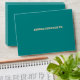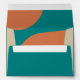 Retrun address personalized retro 70s bold typography font wedding teal, rusty orange, and beige envelopes with abstact shapes liner.