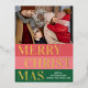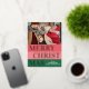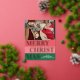 Unique, trendy and simple chic seasonal Christmas Holiday greetings card featuring your favourite winter photograph and real gold foil MERRY CHRISTMAS text on a coral red, blush pink and forest green coloured bold stripes pattern. With room to customise or personalise with a photo and family name or names of your choice on the front, and a customisable season greeting poem on the backside of the card, including your return address, city, zipcode and state.