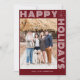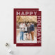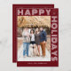 Modern Geometric "Happy Holidays" One Photo Holiday Card. Font and graphics in white. Background on front in back in dark red. Backside of card has room for additional custom text.