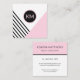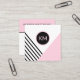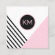 Brand your business with a contemporary pop art geometric pattern that has a retro feel using this fashion forward square business card with angled black stripes and pink colour block with a prominent matching round logo frame surrounding your monogram. Personalise the text template with your monogram and business info on the reverse side of the card. The example job title shown here is a beauty consultant, but this versatile business card works well for boutiques, the fashion industry, bloggers, designers, stylists and many other professions as well.