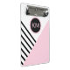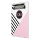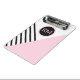 A contemporary pop art geometric pattern with a retro feel, this fashion forward clip board has angled black stripes and pink colour block with a prominent matching round frame surrounding your monogram. Personalise the text template with your monogram. Other matching office products are available in this stylish design. It makes a wonderful personalised choice for home, school or business.