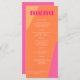 Abstract shapes retro vintage 70s style unique wedding menu card with bold typography in a vibrant trendy modern hot pink magenta and orange chic colour palette. +++++++ Please note that all the colours are changeable. ++++++++++++ Suitable for casual stylish contemporary weddings.