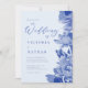 Modern Retro Light Blue Chinoiserie Floral Wedding Invitation