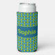 Modern Retro Link Pattern in Blue and Green Seltzer Can Cooler