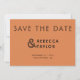 Customisable Modern Minimalist Orange Red Wedding Save the Date Invitation Card. A colourful choice for a desert wedding, summer wedding or destination wedding.