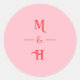 Modern Retro Monogram Pink & Red Wedding Classic Round Sticker