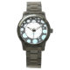 Personalise this modern fun and funky retro style polka-dots watch with a Name or your own text within this border of turquoise blue and white gradient circles on black.