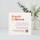 The invitation employs a striking colour scheme by featuring names in two contrasting colours: purple and orange. This artistic choice adds a dynamic element to the overall design, capturing the essence of mid-century modern aesthetics with a contemporary twist.