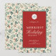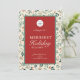 Merriest holiday season elegant typography non-photo business corporate Christmas greeting card with green boughs of holly pattern, your custom logo, and text in a retro vintage vibe.