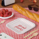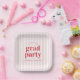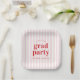 Modern Retro Red & Pink Stripes Graduation Party Paper Plate
