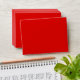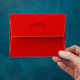 Modern bright red envelope with three line return address on the back flap.