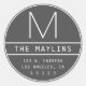 Modern Return Address & Monogram | Dark Grey Classic Round Sticker