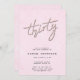 A simple, modern, elegant and chic 30th birthday party invitation template featuring a sweet pink textured background, the word THIRTY covered in rhinestones (simulated, not real stones, this is a digital effect), modern calligraphy script and typography in modern fonts. A chic, elegant and modern design for a woman on her thirtieth birthday.