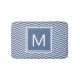 A modern riverside blue and white chevron pattern bathmat. Make it personal by adding your initial to the monogrammed square.