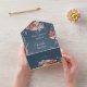 AVAILABLE WITH A QR CODE OR WITH OR WITHOUT DINNER CHOICE OPTIONS. Elegance and simplicity, with a touch of romance makes this wedding invitation unique. A soft dusty dark blue background sets the stage on this invitation, surrounded by a beautiful garden floral frame of dusty pink, cream, pale yellow, and teal. Created by Simply Farmhouse Press.