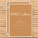 Elegance and simplicity makes this bridal shower invitation unique. A soft rust terracotta background takes centre stage on this invitation, surrounded by a simple white frame. The script adds a touch of playfulness with its heart shaped spacer. Created by Simply Farmhouse Press.