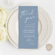 Make your wedding reception extra special with this elegant wedding thank you card, designed to be placed at each guest’s dinner setting. Featuring a modern minimalist layout with chic script lettering, dusty blue theme, it’s a thoughtful way to express gratitude to family and friends for sharing your big day. Perfect for wedding dinners, rehearsal dinners, or receptions, this customisable card can be personalised with your names, date, and special message. A stylish detail that doubles as wedding table décor, giving guests a heartfelt keepsake to remember the evening. Ideal for modern, rustic, or classic wedding themes.