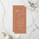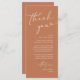 Make your wedding reception extra special with this elegant wedding thank you card, designed to be placed at each guest’s dinner setting. Featuring a modern minimalist layout with chic script lettering, copper brown terracotta theme, it’s a thoughtful way to express gratitude to family and friends for sharing your big day. Perfect for wedding dinners, rehearsal dinners, or receptions, this customisable card can be personalised with your names, date, and special message. A stylish detail that doubles as wedding table décor, giving guests a heartfelt keepsake to remember the evening. Ideal for modern, rustic, or classic wedding themes.