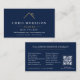 Modern Roofer Navy Blue Gold QR Code Business Card