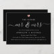 This minimal engagement party invite shines through its simplicity. Beautiful script with flourishes reads "The Future Mr. and Mrs" alongside your personal celebration details in modern typography. Above sits a delicate faux rose gold heart. This is the black version.