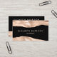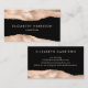 Chic and modern professional business card that features shimmery rose gold strokes edged in rose gold faux glitter against a black background. Your name and details are in simple and elegant light rose gold typography.