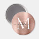 Modern Rose Gold Brushed Metal Monogram Script Magnet