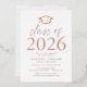 Invite guests to celebrate the grad with our modern class of 2025 graduation party invites. The invites feature a graduation cap at the top with "Class of 2025" displayed in rose gold foil lettering. Personalise the invites by adding the graduate's name, school, and graduation party details. The rose gold foil graduation party invites reverse to display the graduate's photo.