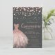 Modern Rose Gold Dots,Dress Grey Quinceañera Invitation