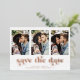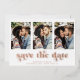 Handwritten Save the Date Copper Rose Gold Marble Multiple Photo Card with REAL rose gold foil in a modern font that evokes a romantic, boho feel. On the back is a trendy coppery faux rose gold foil style veins running through classic marble. Designed to use three of your favourite photos for added customisation. Easily add your names and dates for a truly personalised design. Please contact us at cedarandstring@gmail.com if you need assistance with the design or matching products.