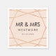 Wedding paper napkin with custom name in geometric rose gold pattern in blush pink background. Perfect for elegant and modern wedding.