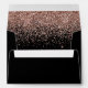 The inside of this elegant modern wedding invitation envelope features a rose gold faux glitter design on a black background. Customise the back flap with the names of the bride and groom in rose pink handwriting script and return address in copperplate font on a black background.