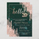 Modern Rose Gold Glitter Drips Green 20th Birthday Invitation