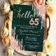 Modern Rose Gold Glitter Drips Green 65th Birthday Invitation