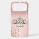 Modern tiara, and drips on rose gold glitter ombre with your name. Add your name or delete the text for a trendy, popular look.