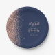 Modern Rose Gold Glitter Navy Blue Wedding Paper Plate