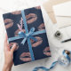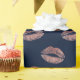 Modern Rose Gold Lips Print Navy Blue Wrapping Paper