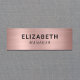 Modern name tag with a name and title in simple typography against a rose gold faux metallic background.