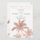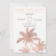 Modern simple faux rose gold palm trees with simple typography, a trendy and tropical save the date wedding theme on palm tree.