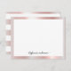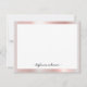 Modern personalised stationery flat cards have a rose gold border with your name or choice of personalisation wording at the bottom in black script lettering. Cards reverse to horizontal large rose gold brushed metallic and white stripe pattern.