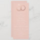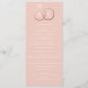 Clean and modern text is easily personalised on this chic, skinny format, wedding program. White feels sophisticated and romantic against soft blush pink when accented with a faux rose gold foil graphic of interlocked wedding rings.
