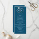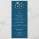 Clean and modern text is easily personalised on this chic, skinny format, wedding program. White type feels sophisticated and feminine when accented with a faux rose gold foil graphic of interlocked wedding rings on a background of navy blue.
