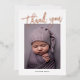 A simple modern thank you card featuring gold foil pressed thank you calligraphy script, portrait photo and minimal text on the front. The back has a personal message that is removable if you prefer to hand write your message. Click the edit button to customise this design.