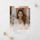 A Modern Rose Gold Script Photo Graduation Announcement with handwritten font full bleed portrait photo on the front with name and graduation details. The back has a second photo and additional details. Click the edit button to customise this design.