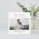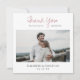This simply stylish wedding thank you card features words of thanks above your favourite photo and your first names and date below it. We've chosen a warm, modern script and an elegant shade of rose gold for 'Thank You' and added 'for sharing our special day' underneath, with that line separated by the the loop of the 'Y', enhancing its relaxed, intimate charm. This message makes this card particularly well suited to expressing your thanks specifically to those who were able to attend your wedding party. You can edit it to express a more general message of thanks, but the nature of the design might limit your options as far as appearance goes, depending on how long your desired message is and how the words can be arranged with the 'Thank You' above them. The text is a very dark grey that is in fact mostly black. You can of course change this to any colour that suits your style and your day, be it true black or another hue. You can also choose a different font for any or all of the text. You might even want to change the thank you wording or other text to something completely different. We've chosen a transparent background, which lets the colour of the card simply serve as the base tone, but you can choose a colour instead. Similarly, on the back we've used the same very dark grey tone on a transparent base, and we've put some placeholder text there for you to delete and replace with your own message, with or without your names, if you want to sign by hand when you get the cards. But you might also simply choose to delete our placeholder text and leave the back entirely blank so that you can write a message by hand on each card and sign your names. In any case please do remember that there's placeholder text on the back as well and to delete all of our sample/placeholder text on both sides of the card! Use the intuitive design tools, your favourite photo and your inspiration to make this chic modern wedding thank you card uniquely yours!