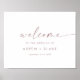 This modern rose gold script wedding welcome poster is perfect for a minimalist wedding. The simple blush pink rose gold colour design features unique industrial lettering typography with modern boho style. Customisable in any colour. Keep the design minimal and elegant, as is, or personalise it by adding your own graphics and artwork. Customise the poster with the name of the bride and groom, and the date of the wedding.