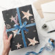 Modern Rose Gold Stars Black Christmas Wrapping Paper